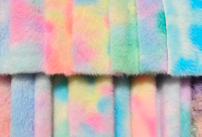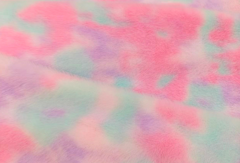 This 500GSM European faux mink rainbow print fabric is made from 100% premium polyester fiber. With a high weight of 500GSM, it offers a soft and luxurious feel, similar to natural mink fur, while incorporating a rainbow-colored European mink print.
