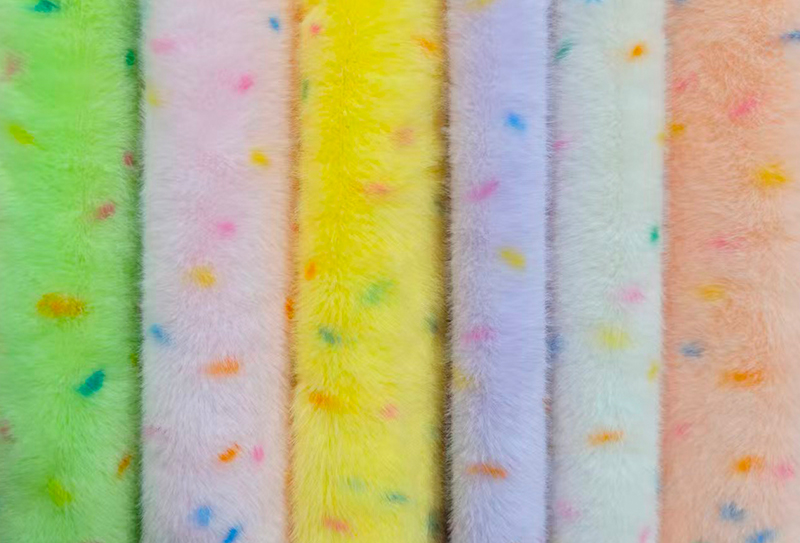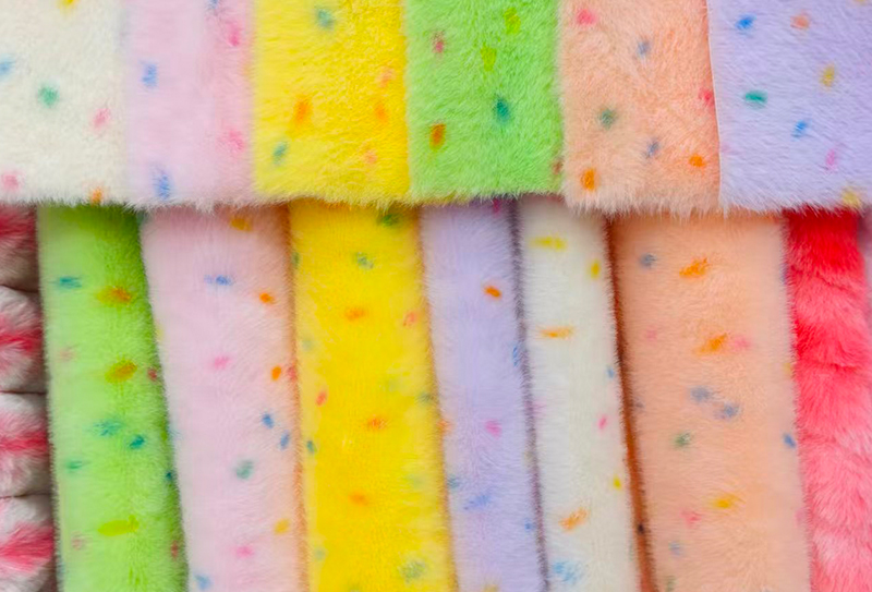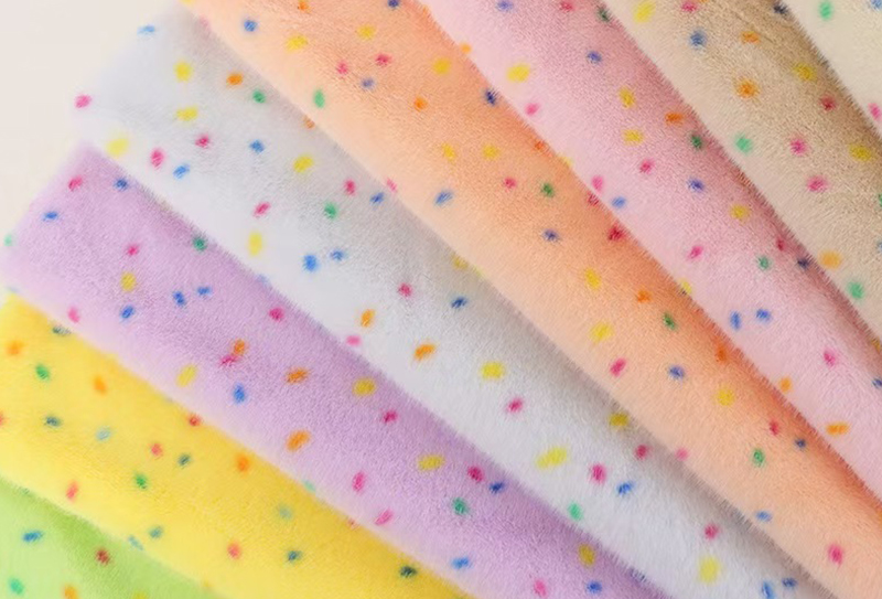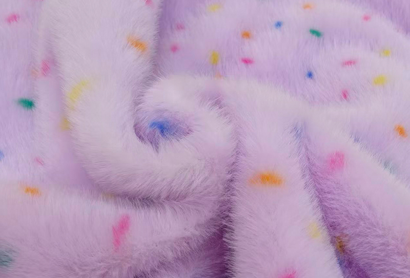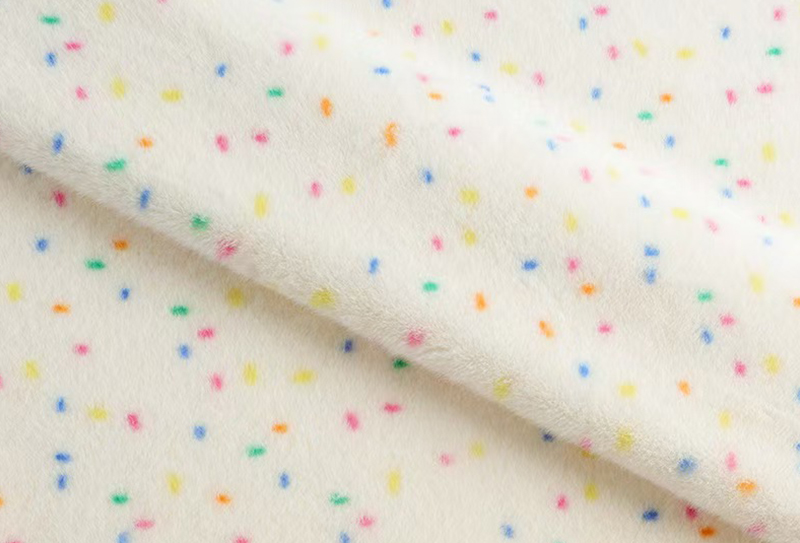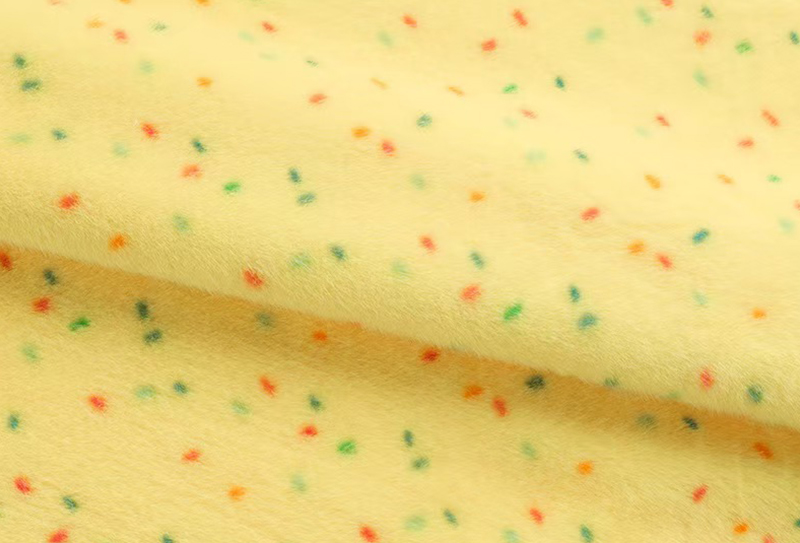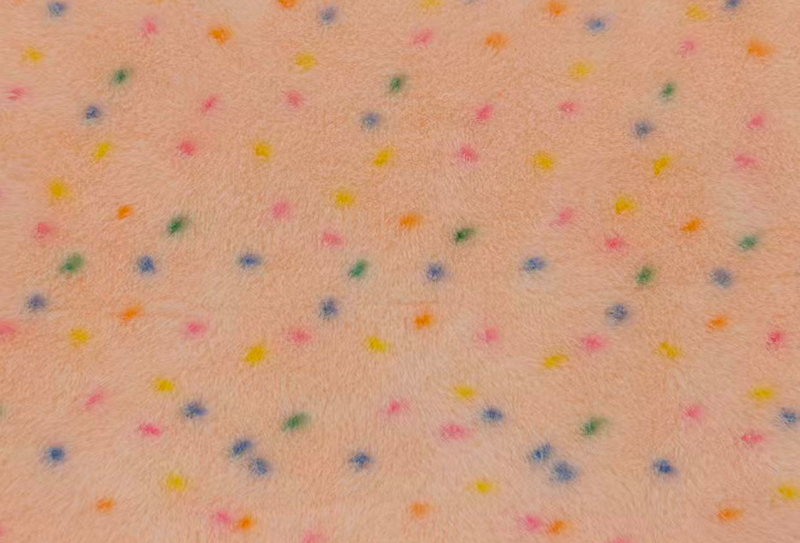 The fabric features a colorful polka dot design and is made from 100% premium polyester fiber. Through precise processing, it achieves a high weight of 500 grams per square meter, resulting in a rich and smooth feel, like the soft down of young mink fur. The 160cm wide design not only maximizes fabric utilization but also gives scarves, flat-top jackets, and other items a flowing drape.